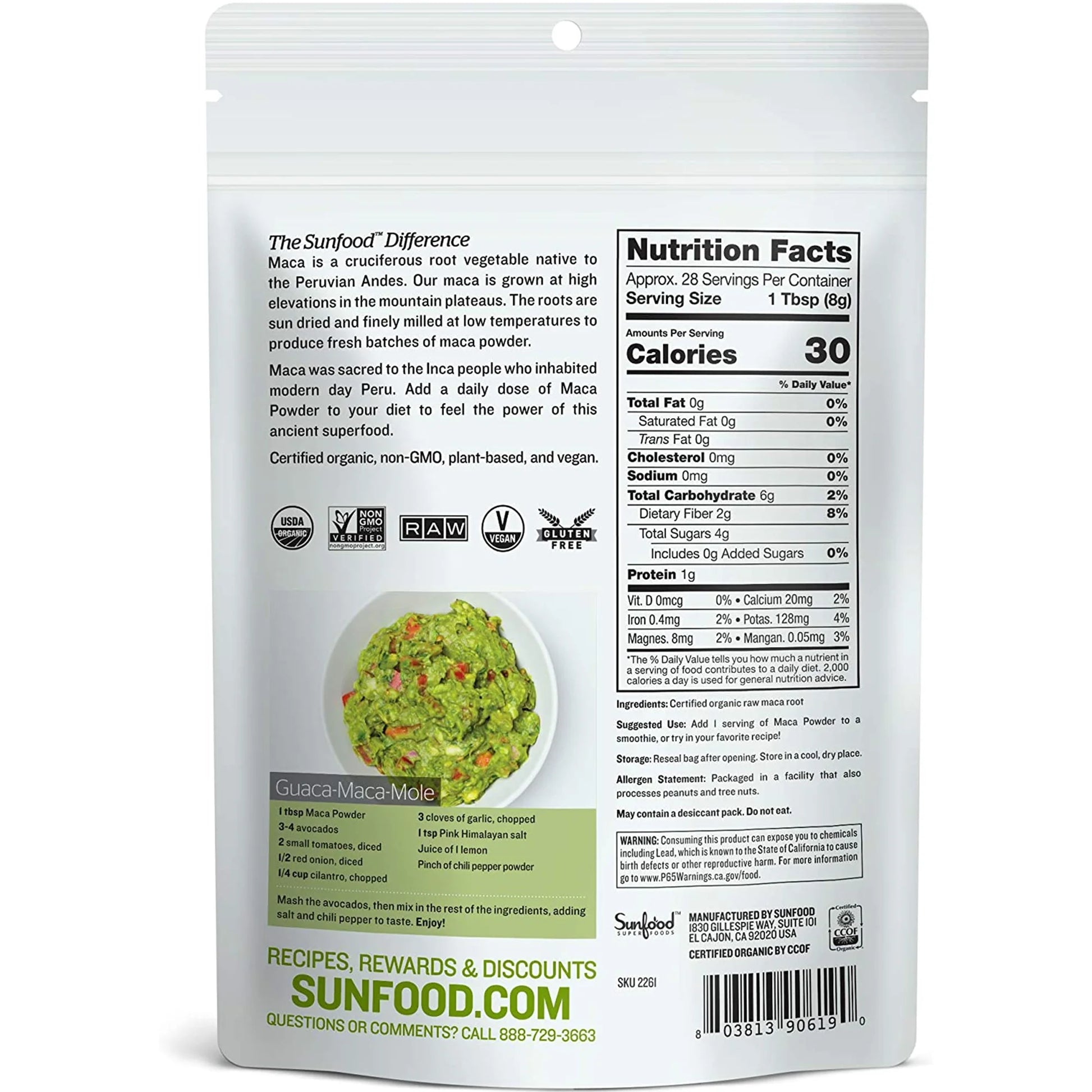 Sunfood Superfoods Raw Maca Root Organic Superfood Powder with Vitamin B1, 8 Oz